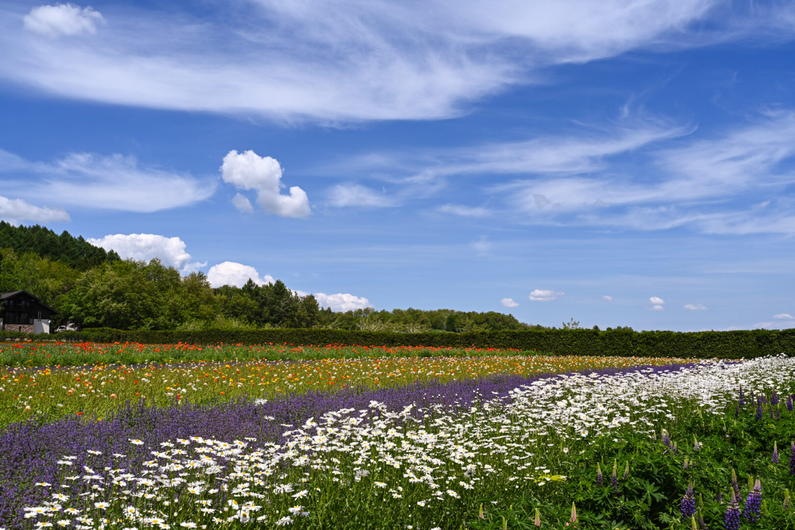 6月上旬から下旬にかけては、キャットミント、ルピナス、ポピーなどが次々と咲き始め、深まりゆく緑と共に色鮮やかな景色が広がります。